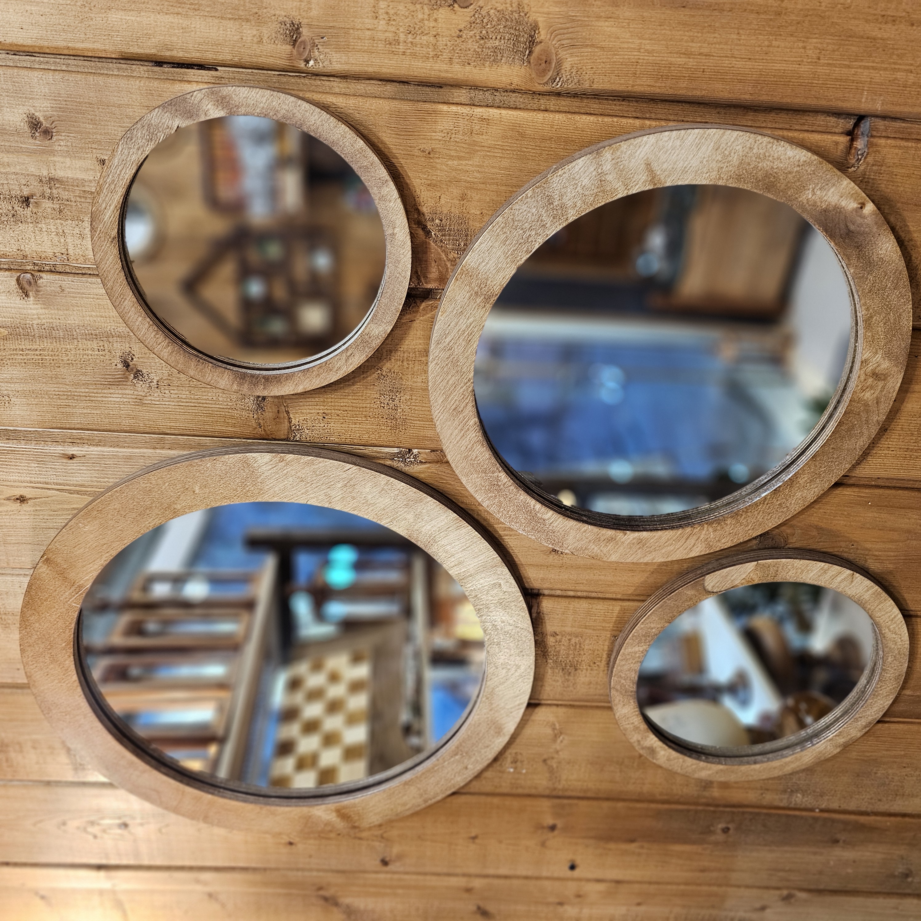 آینه گرد قاب چوبی
