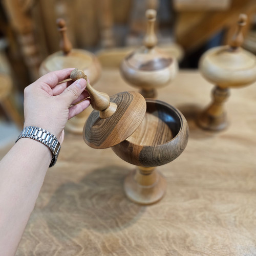آجیل خوری چوب گردو پایه بلند و خراطی شده